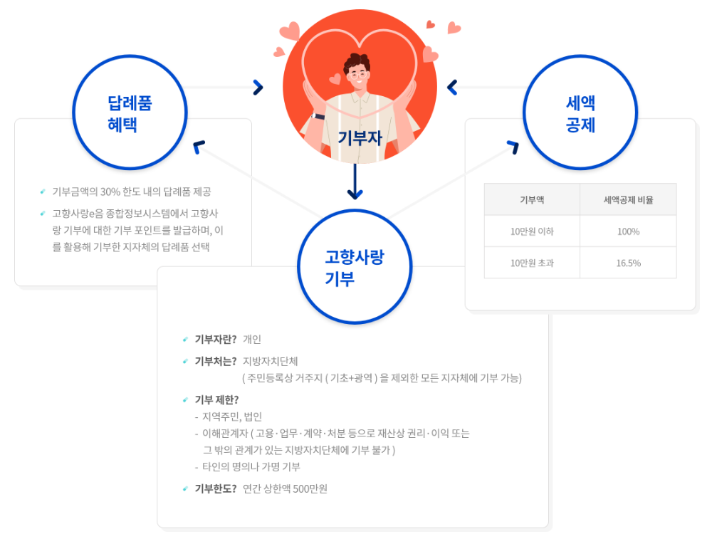 - 주민등록상 거주지를(기초+광역)을 제외한 모든 지자체에 기부 가능