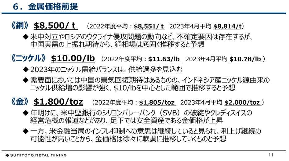 [중략] 실적 예상 관련해서는 스미토모 메탈 마이닝 측에서 매우 보수적으로 잡고 있기 때문에 이번 분기 실적 발표를 보면서 정리하도록 하겠습니다.
