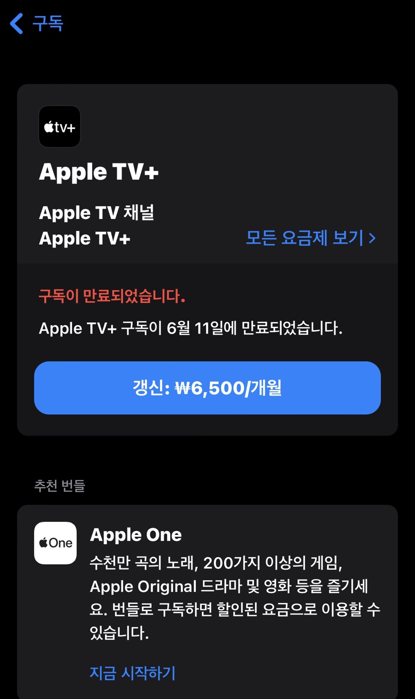 애플 기기 구매 후 애플 TV처럼 무료로 3개월 제공되는 서비스를 가입 후 해지를 하지 않아서,