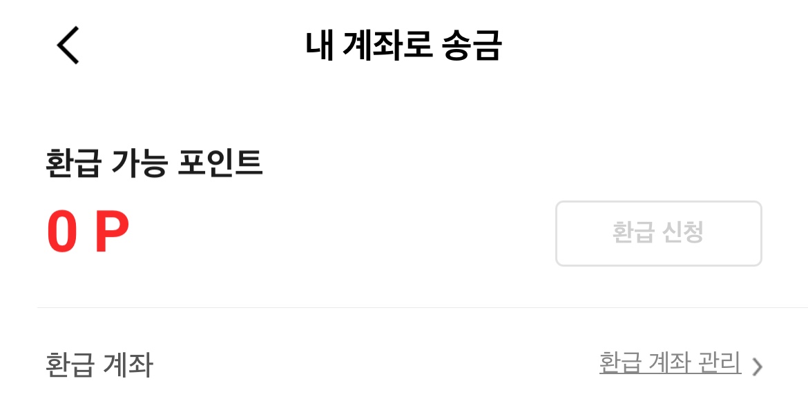 충전 후 송금 메뉴로 들어가면 환급 가능 포인트가 0P로 표시가 됩니다.